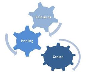 Peeling muss nicht täglich sein, aber regelmäßig 2x die Woche. Im Peeling sind Stoffe, die die stark verhornte Stellen lösen. Kleine Partikel wie Seesand, Fruchtkerne lösen die obersten abgestorbenen Hautschichten. Oft sind im Peeling noch Vitamine und Zink, die die Heilung der entzündeten Haut unterstützen.